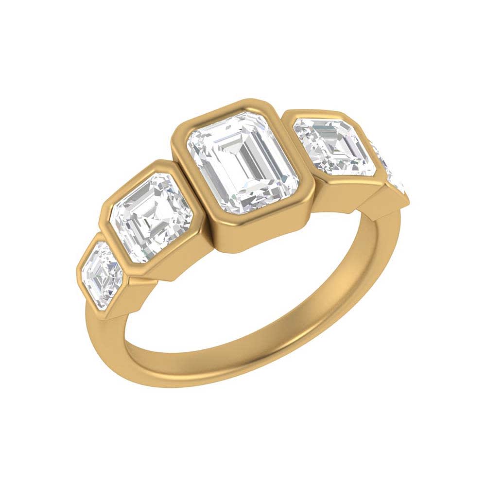 The grandeur of rings. A 5 diamond set ring, with the centre diamond an emerald cut and the other 4 diamonds asscher cut. The combination of the two cuts make this ring extraordinary. Simple yet it shows style and sophistication. Elegance at its finest. Emerald cut lis at 1.20ct and the asscher cuts total to 1.80ct. A total weight of 3.00ct of shine and brilliance. A magnificent gift to present to the lady of your live or to gift to oneself. Made by our professional jewellers and their amazing craftsmanship. Perfection to detail. Available in rose, white and yellow gold. Temple and Grace offer lifetime warranty and complimentary resizing and rhodium plating for white gold. Ask our professional sales advisors for any assistance.