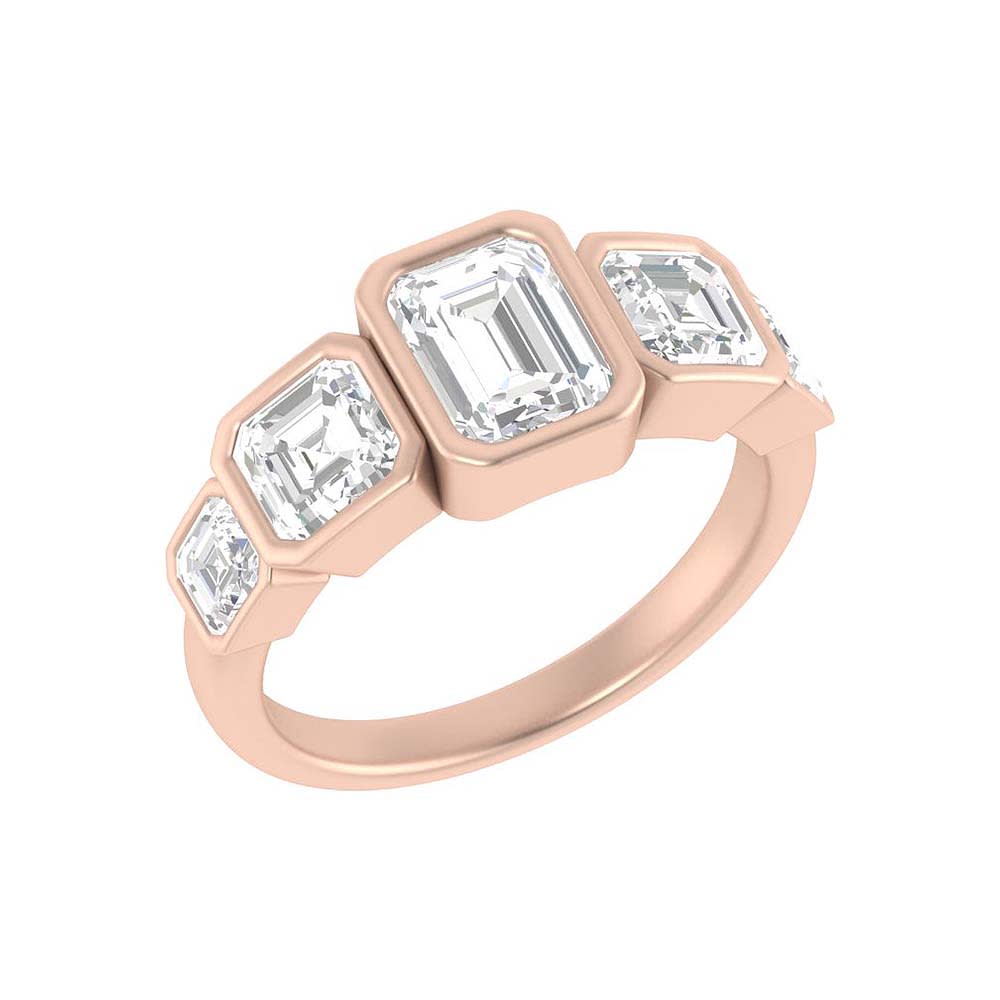 The grandeur of rings. A 5 diamond set ring, with the centre diamond an emerald cut and the other 4 diamonds asscher cut. The combination of the two cuts make this ring extraordinary. Simple yet it shows style and sophistication. Elegance at its finest. Emerald cut lis at 1.20ct and the asscher cuts total to 1.80ct. A total weight of 3.00ct of shine and brilliance. A magnificent gift to present to the lady of your live or to gift to oneself. Made by our professional jewellers and their amazing craftsmanship. Perfection to detail. Available in rose, white and yellow gold. Temple and Grace offer lifetime warranty and complimentary resizing and rhodium plating for white gold. Ask our professional sales advisors for any assistance.