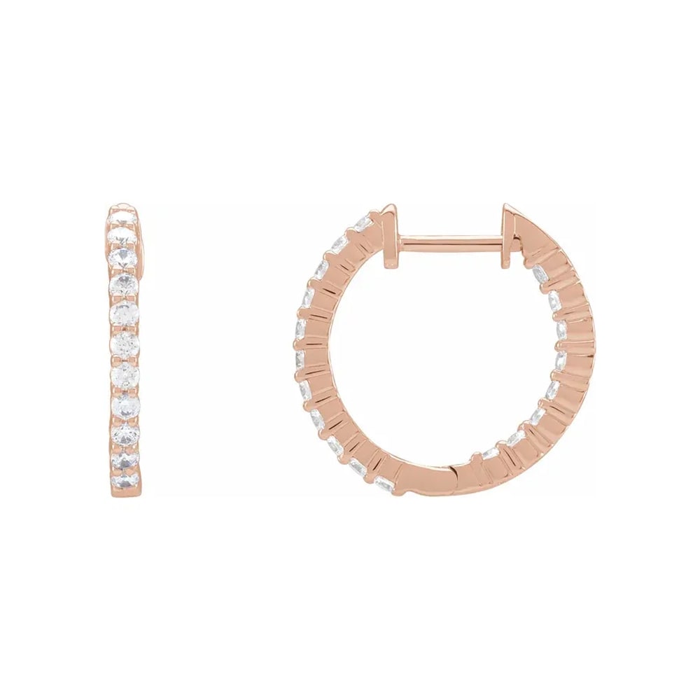 These exquisite women's earrings are truly a sight to behold. The centrepiece of these earrings is the mesmerizing setting of glittering round brilliant diamonds that adorn both the front and back sides. Crafted with precision, it features a strong hinge closure mechanism. They effortlessly elevate any outfit, adding a touch of glamour and radiance to the wearer's look. All Temple and Grace jewellery is beautifully crafted to the highest standards and is made at our jewellery workshop directly by us (skilled jewellery craftsmen). This is why you can save over 40% when compared to high-street retail prices. We also offer a lifetime warranty and unmatched 100 day returns. You can shop online or book an appointment to visit our jewellery boutiques in Sydney, Melbourne, Brisbane, Perth and Adelaide. 17mm x 2mm