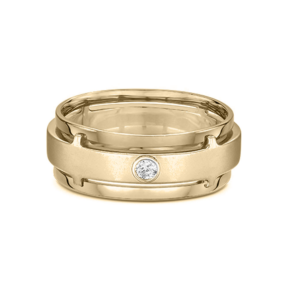This ring is a striking blend of elegance and bold character. Its layered design showcases a beautiful harmony of tones, creating depth and sophistication. At the centre rests a luminous diamond, radiating brilliance and drawing the eye with its refined sparkle. The contrasting finishes highlight its craftsmanship, while the smooth, flowing curves give it a contemporary yet timeless appeal. A perfect balance of strength and grace, it captures both luxury and individuality in a single piece. All Temple and Grace jewellery is beautifully crafted to the highest standards and is made at our jewellery workshop directly by us (skilled jewellery craftsmen). This is why you can save over 40% when compared to high-street retail prices. We also offer a lifetime warranty and unmatched 100 day returns. You can shop online or book an appointment to visit our jewellery boutiques in Sydney, Melbourne, Brisbane, Perth and Adelaide.